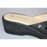 La suola morbida ammortizza il carico garantendo il massimo comfort al piede. Realizzato con materiali morbidissimi in particolar modo il plantare e una pianta larga per garantire comodità. Particolare è la lavorazione che riveste il tacco, come tutto il fondo. Tacco alto 4,3 cm. Piccola regolazione su un lato grazie allo strappo in velcro. Il plantare come già detto molto morbido e accoglie il piede come in un guanto, è estraibile, per la sola pulizia, non sarebbe possibile mettere quello ortopedico in quanto leggermente più spesso. Nella scelta del numero si deve tenere presente che l'articolo in questione ha una calzata leggermente più ampia rispetto alle altre.