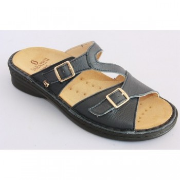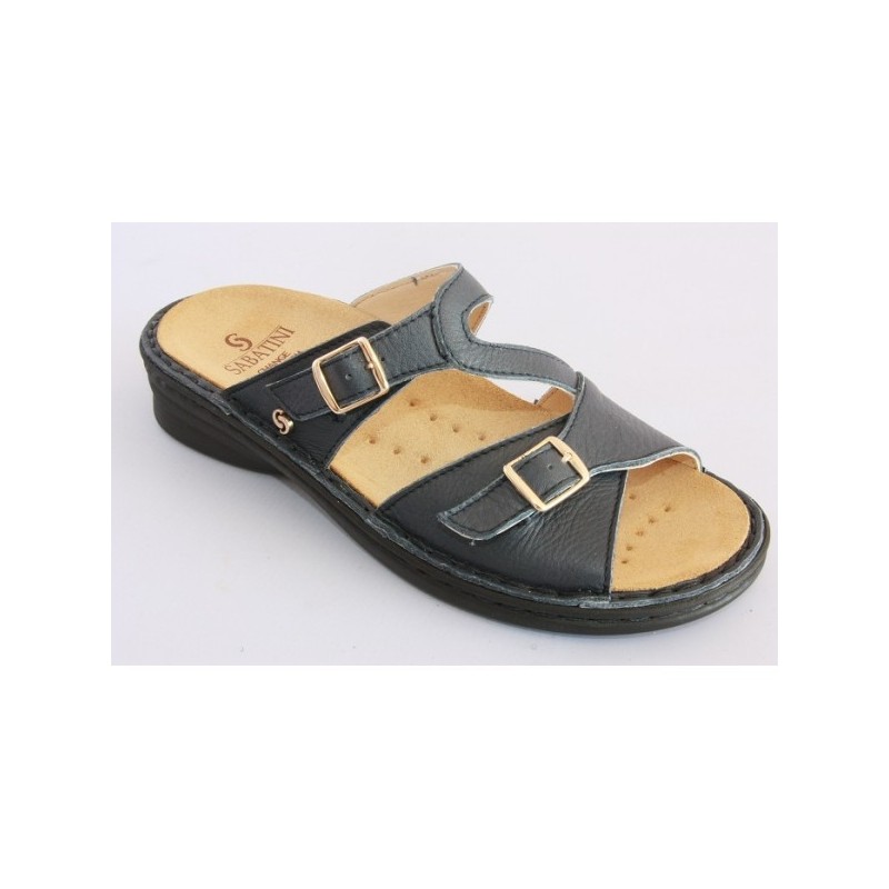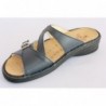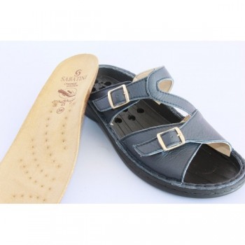 Ciabatta con plantare anatomico ed estraibile, fasce realizzate con pellame morbido che si modellano perfettamente al piede, estrema comodità ed eleganza. Calzatura snella e leggera. Plantare estraibile con la possibilità di mettere quello ortopedico. Ottima nel peroiodo estivo. Altezza del tacco ortopedica 3,5 cm, cuciture fatte a mano da sapienti calzolai.