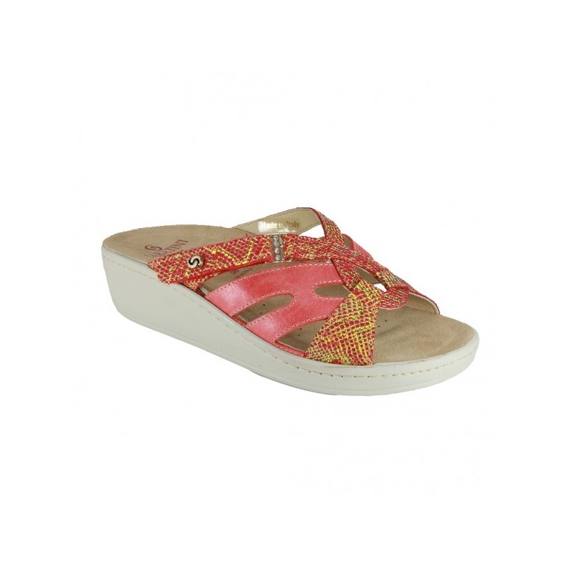 Calzatura caratterizzata da uno stile nuovo, giovane ed originale. Articolo che fa parte di una nuova linea, nuovi pellami morbidi e giovanili, calzatura leggerissima e masssimo confort. Plantare in lattice morbidissimo e tomaia dai colori e pellami innovativi. Massima attenzione per i dettagli. La comodità che si lega con l'estetica. La regolazione è possibile grazie allo strappo in velcro posto lateralmente. Fondo in gomma antiscivolo. Nuovo plantare in lattice, molto morbido con la caratteristica di ammortizzare il peso del corpo riducendo il carico sulle articolazioni oltre che estraibile per alloggiare quello ortopedico su misura.