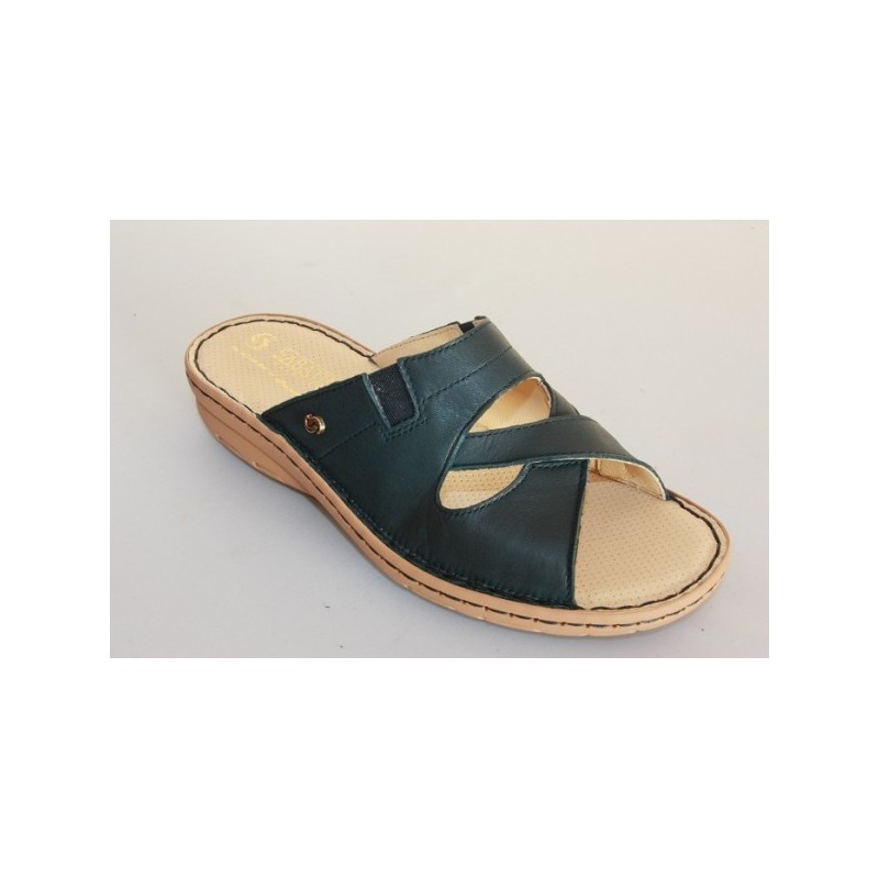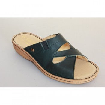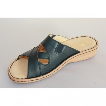 Ciabatta ideale per chi conduce una vita dinamica e non vuole rinunciare al binomio comodità/estetica. Calzatura realizzata con piccola regolazione elastica, in versione bianca o blu. Suola morbissima, leggera e confortevole, cuciture fatte a mano e pianta larga. Altezza del tacco ortopedica 3,5 cm