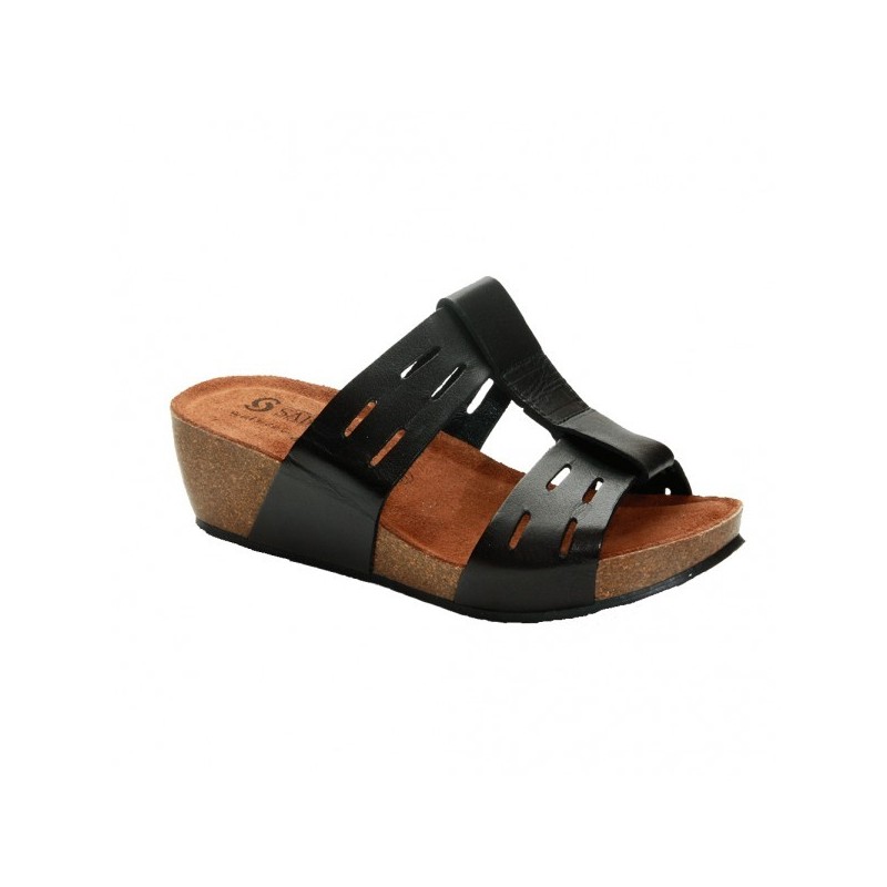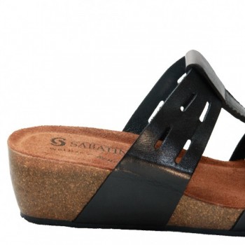 Ciabatta realizzata con materiali morbidissimi che garantiscono freschezza e leggerezza. La massima comodità senza rinunciare all'estetica. Impreziosito da una importante composizione in sughero e pelle Una zeppa in sughero alta circa 5 cm e il massimo della comodità e del comfort.