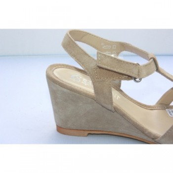 Lattenzione per i dettagli e la massima comodità sono caratteristiche di questo sandalo. La particolarità della zeppa foderata in camoscio conferisce al sandalo stile e lo rende adatto alle consumatrici di tutte le età. I materiali sono morbidissimi tutto ciò a beneficio, fra gli altri, di piedi stanchi e provati senza rinunciare alla classe di un sandalo con zeppa. Nuovo stile 2014. Sandalo con tacco fasciato di 80 mm. L'eleganza si sposa con il comfort.
