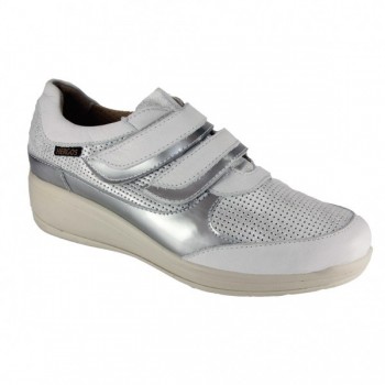 Calzatura comoda ed estremamente elegante. Realizzata con materiali di prima scelta e tecniche di lavorazione all'avanguardia. Ottima regolazione grazie a due strappi in velcro. Nuovo plantare in lattice, molto morbido con la caratteristica di ammortizzare il peso del corpo riducendo il carico sulle articolazioni oltre che estraibile per alloggiare quello ortopedico su misura. Tacco alto 4,5 cm, suola antiscivolo. E' dotata della speciale soletta estraibile per avere una calzatura sempre nuova e conforme al D. Lgs. 96/47 e seguenti (Calzatura atta ad accogliere plantare di serie o su misura ? D.M. di serie Classe I) marcatura CE.